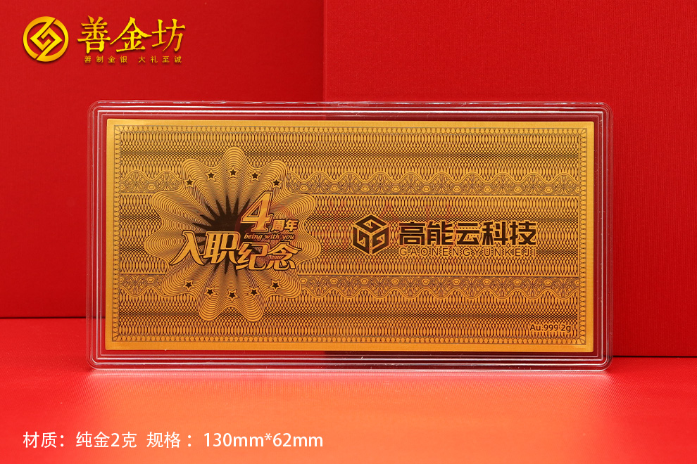 上海高能云科技员工入职4周年纪念金钞_定制金钞 定做纪念钞 金钞订做 金钞制作