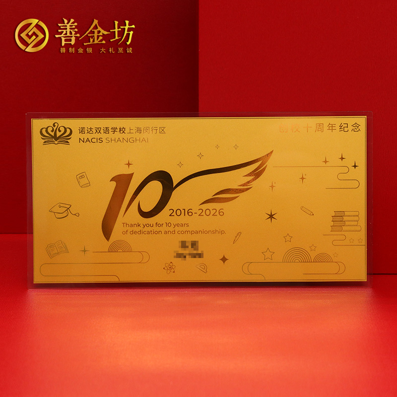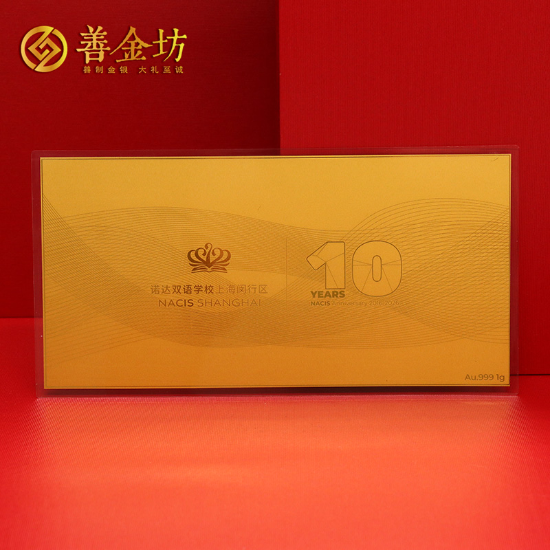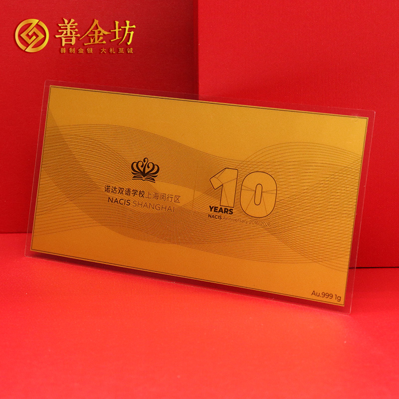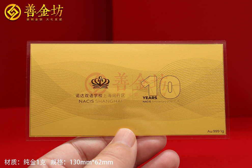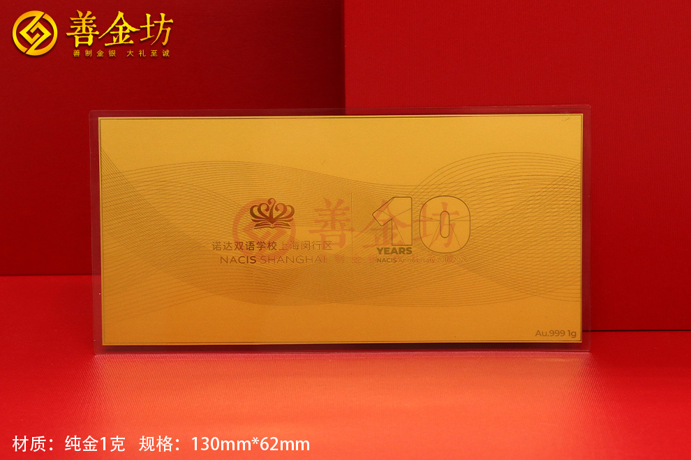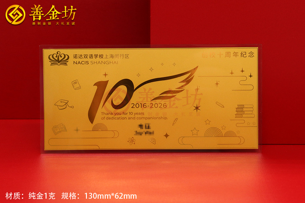 上海诺达双语闵行校区成立十周年纪念金钞_定制金钞 定做纪念钞 金钞制作 1g