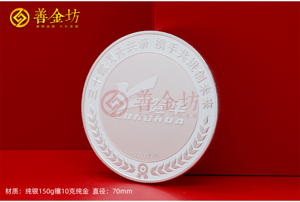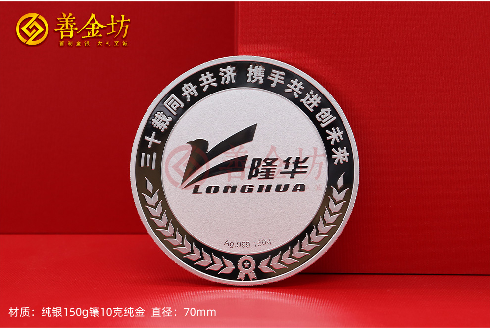 河南隆华科技定制银镶金纪念章_ 金币定制 定做纪念章 定制纪念银币 制作纪念银币 定做金币 激光