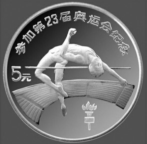 这套纪念币共有两枚,一枚女排,一枚跳高。开始时,并没有明确哪个运动项目,只要是奥运项目就可以。最后选用女排和跳高,完全是因为中国女排连续在世界杯、世锦赛上获得冠军、朱建华在全运会上打破了世界纪录。