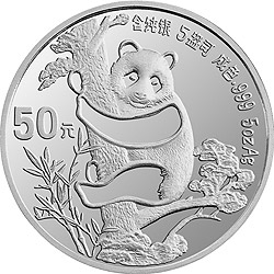 中国熊猫金币发行5周年纪念银币5盎司圆形银质纪念币