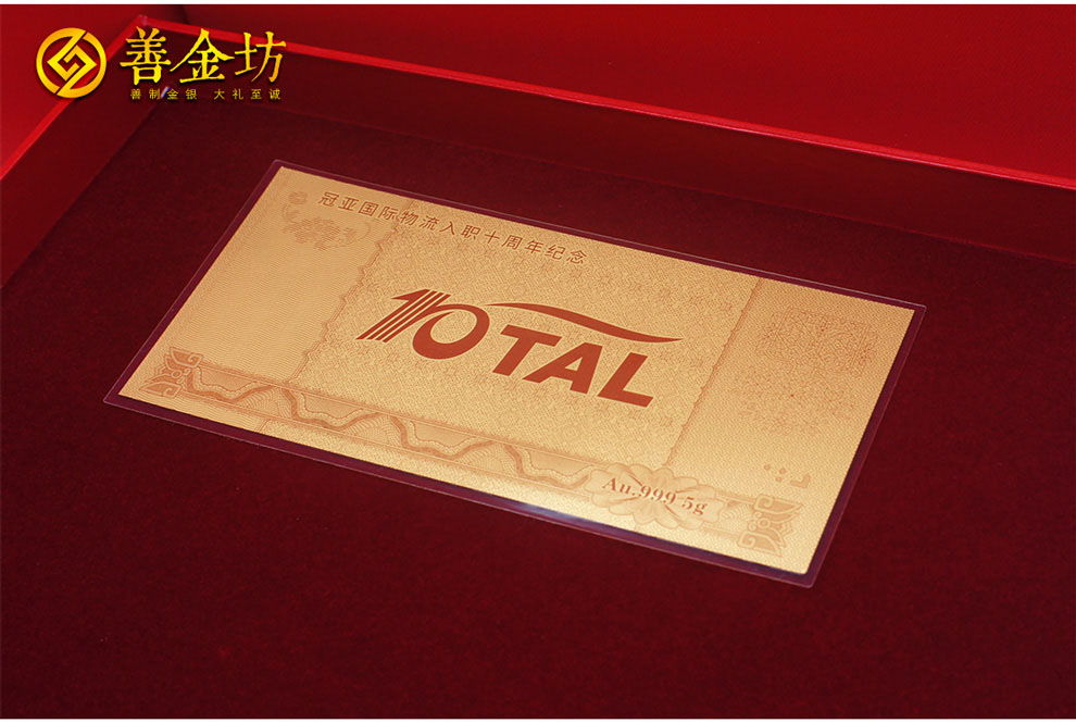 浙江宁波冠亚员工入职十周年定制金钞_金钞定做 纪念钞制作 企业金钞订做