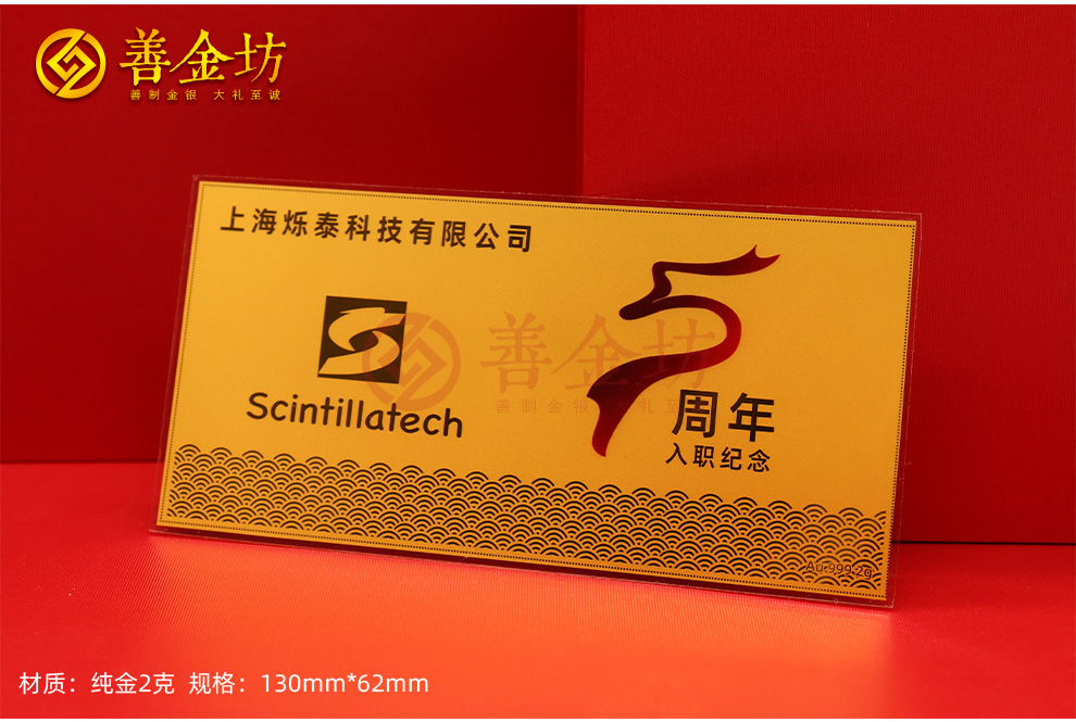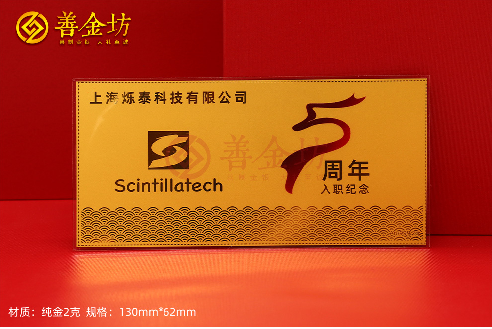 上海烁泰科技入职5周年纪念金钞_2克金钞 定做金钞 金钞制作 金钞厂家 彩印