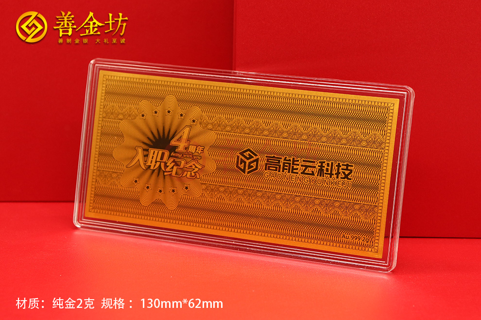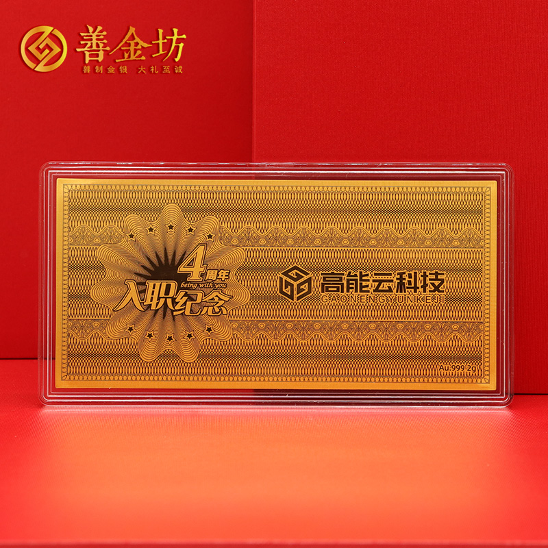 上海高能云科技员工入职4周年纪念金钞_定制金钞 定做纪念钞 金钞订做 金钞制作