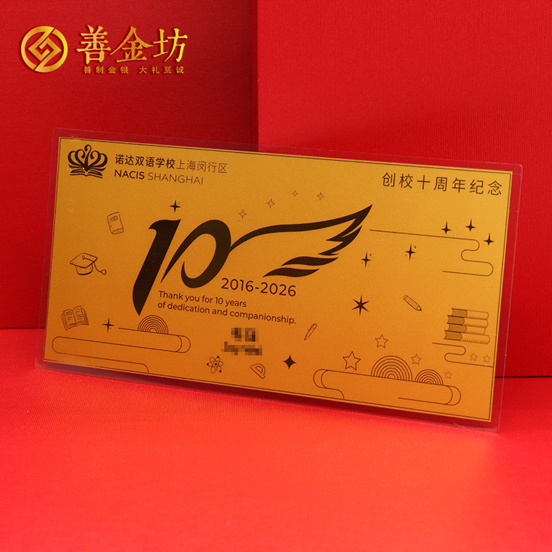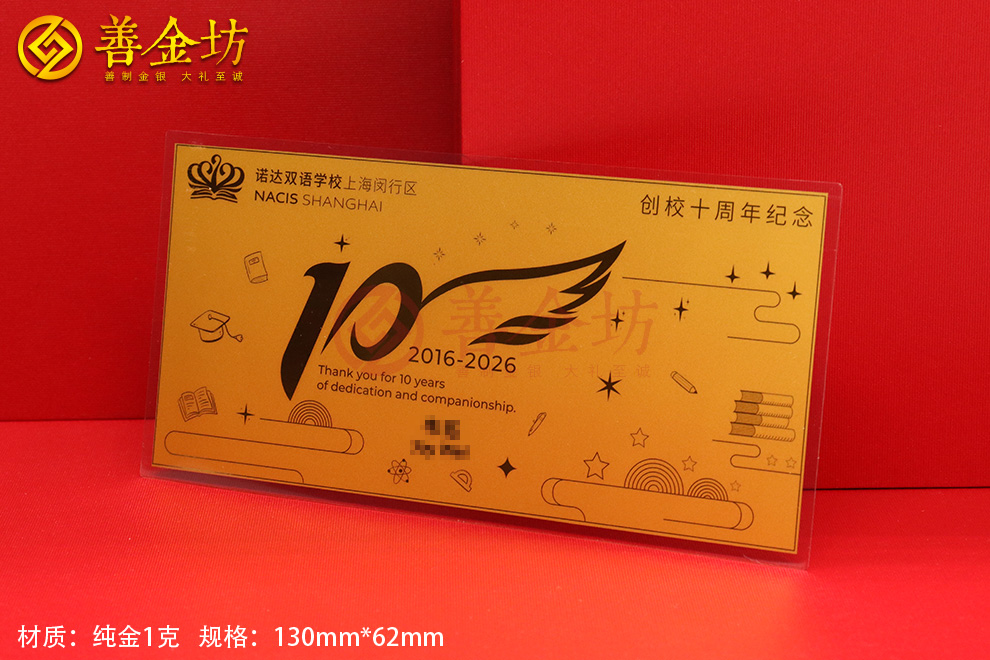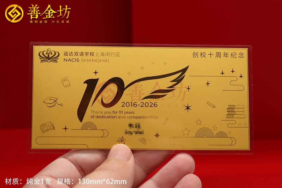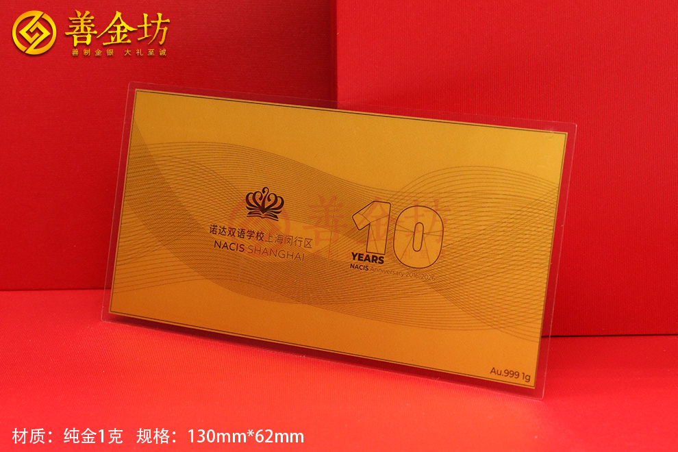 上海诺达双语闵行校区成立十周年纪念金钞_定制金钞 定做纪念钞 金钞制作 1g