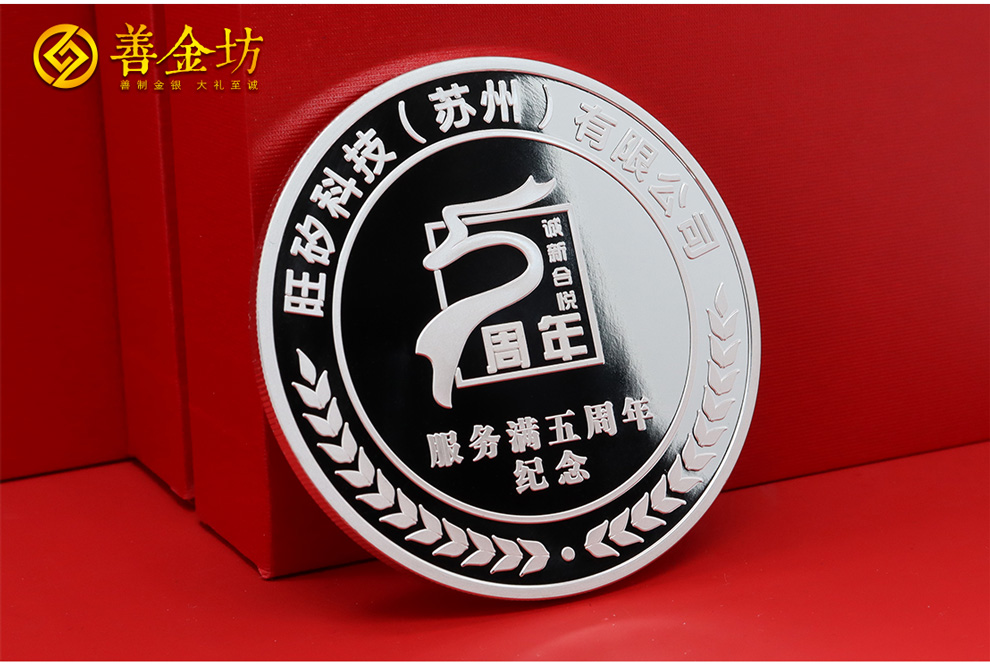 江苏旺矽科技员工入职五周年定制纯银80克纪念章_ 银币定制 纪念章制作 定做纪念章 制作纪念章 银币制作