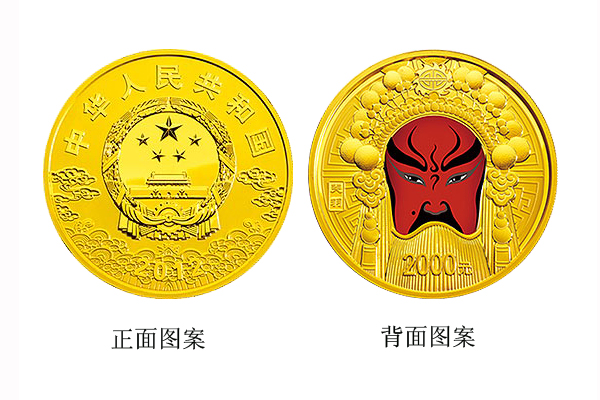 5盎司金币背面脸谱人物简介:“关羽”京剧脸谱,勾整脸,主色红,配色黑。关羽是京剧《古城会》、《水淹七军》、《走麦城》等剧目中的主要人物,是京剧中红生行应工的角色,表现了关公侠义豪爽、勇谋兼容的性格特征。·正背面图案设计者:王虎鸣 ·正面图案石膏雕刻者:黄 喆 胥喻婷·背面图案石膏雕刻者:张 磊·艺术顾问:苏 ...