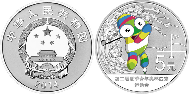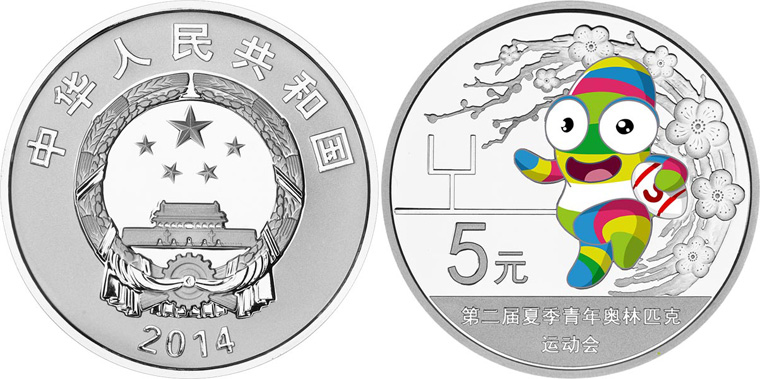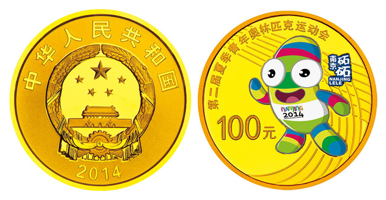中国人民银行定于2014年2月28日发行第二届夏季青年奥林匹克运动会金银纪念章一套。该套纪念章共4枚,其中金币1枚,银币3枚,均为中华人民共和国法定货币。
