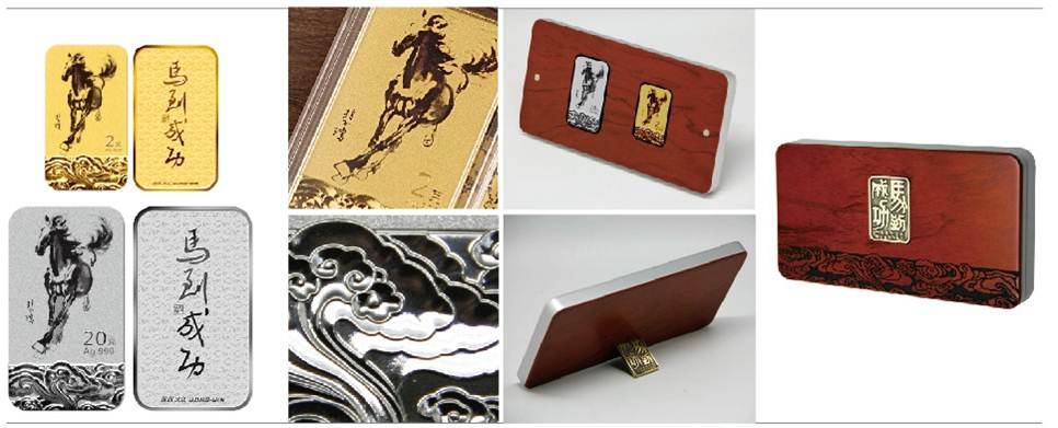 该系列金银条精选了大师九幅最具代表性也是精神头最足的奔马图,利用先进的彩色造币工艺还原大师对“纸本墨马”的诠释,和金银的结合做到不失原作的气、神、力、韵。