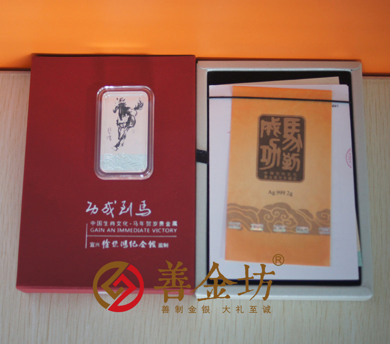 【商品名称】《马到成功》马年贺岁银条2克【商品品相】全新【成 色】999纯银2克