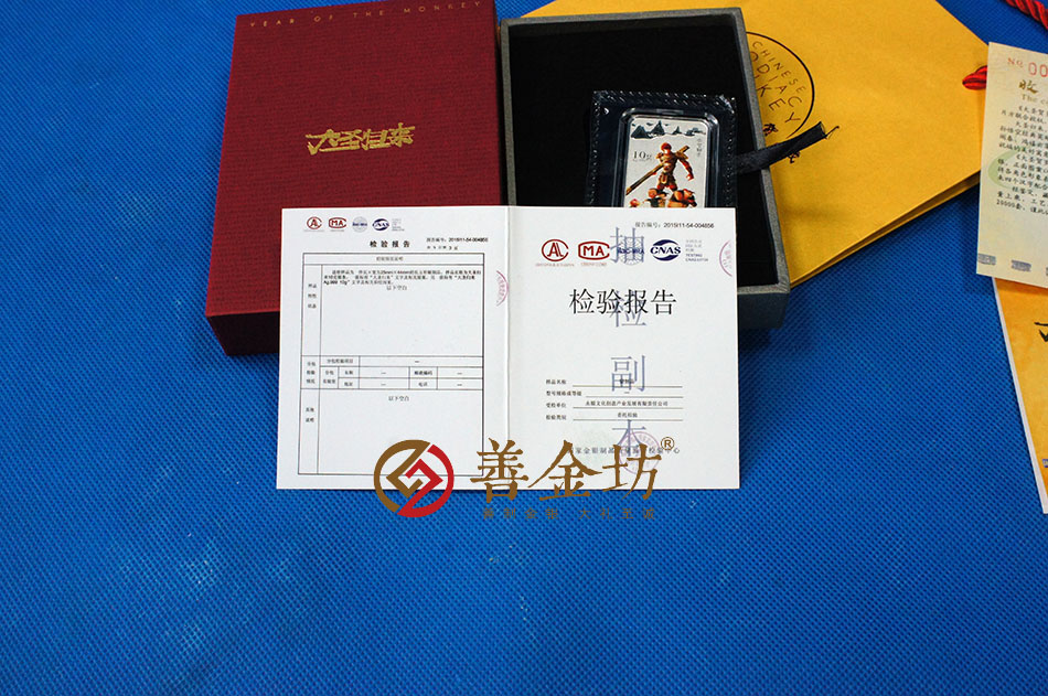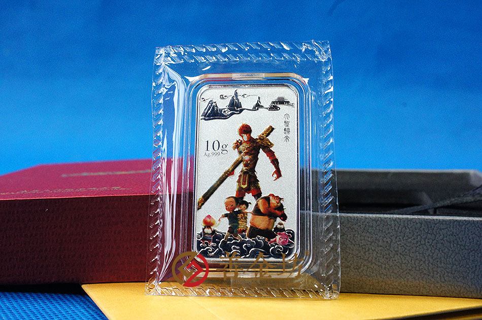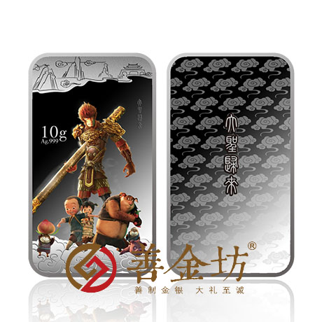 在众生热议之际,“《大圣归来》丙申猴年贺岁金银条”应运而生,这套贺岁金银条取材于国产电影《西游记之大圣归来》,将影片中家喻户晓的齐天大圣完美呈现于贵金属之上,让英雄形象随着与之匹配的尊贵介质一起恒久流传,代代相承。