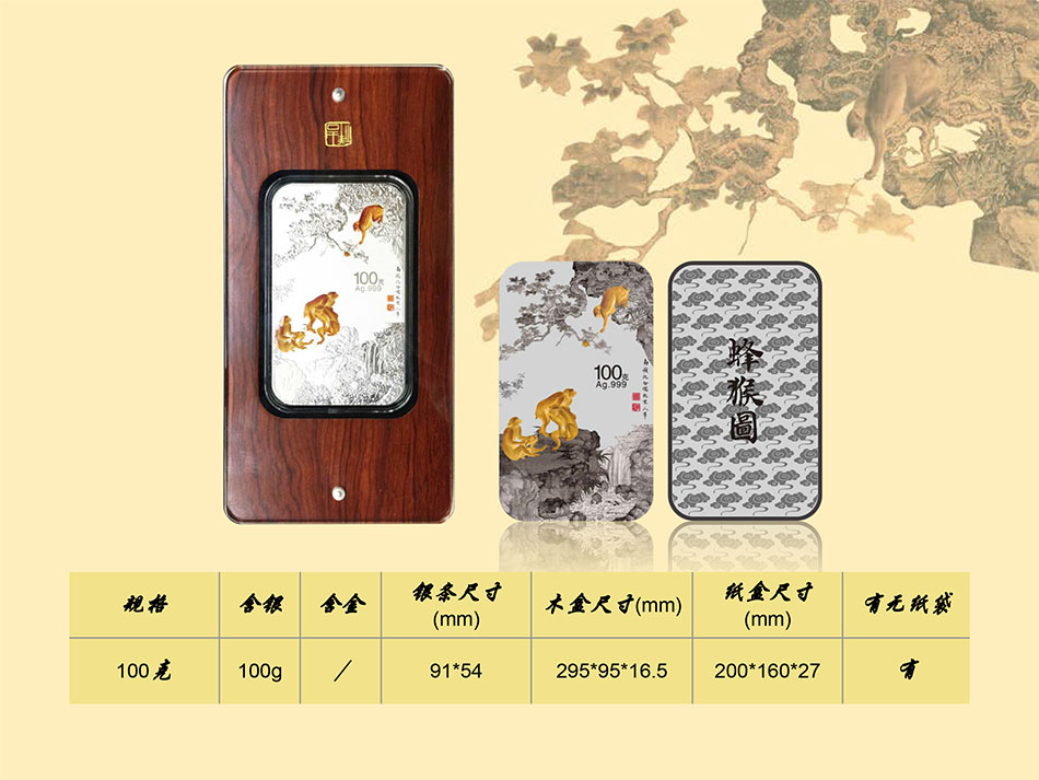 蜂猴图-丙申猴年贺岁银条 100克