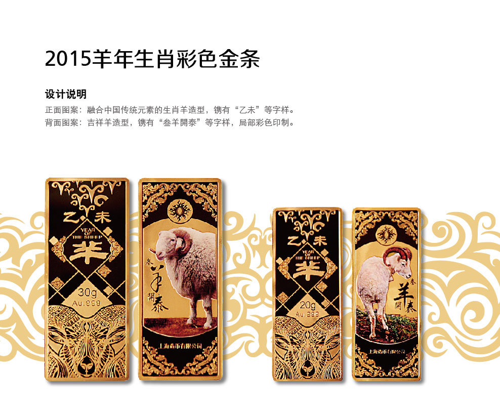 2015年羊年生肖彩色金条 30克 上海造币厂
