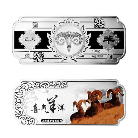 2015年羊年生肖彩色银条 100克 上海造币厂