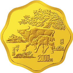 中国丁丑(牛)年金银铂纪念币1公斤梅花形金质纪念币