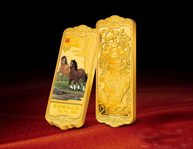 马 年生肖贺岁金条由沈阳造币有限公司(原沈阳造币厂)铸造发行,沈阳造币有限公司,隶属于中国人民银行总行中国印钞造币总公司,是国家指定的专门从事法定货 币生产的特殊企业,主要产品包括流通硬币、金银纪念币等,是行业内首家“特安级”企业。自2004年首次发行鸡年贺岁金银条以来,十年连续发行,穿行业生 肖贵金属典范佳作。