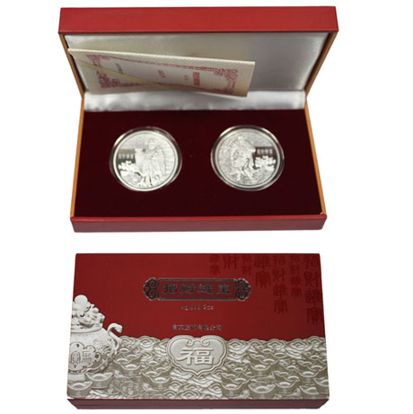 招财进宝银质双枚章1盎司X2枚 南京造币厂