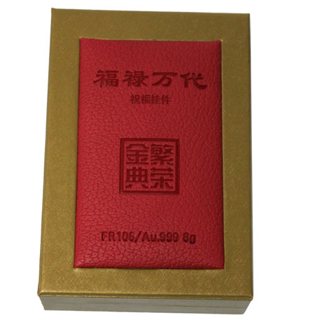 【名 称】福禄万代金葫芦【材 质】纯金8克 Au.999【规 格】【发行量】8000套【铸造厂】北京繁荣【产品介绍】“福禄万代”以葫芦造型进行设计,正面雕刻康熙皇帝御笔“多才多子多田多寿福”的“福”字。葫芦,中国民俗文化寓意“福禄”,挂件为佩戴饰品,“戴”与“代”同音,故为“福禄万代”,寓意对佩戴者“福禄安康”和“代代荣华富贵”的美好祝愿。