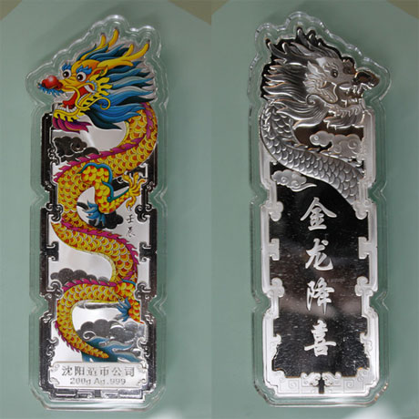 龙年贺岁彩色银条(200克) 沈阳造币厂