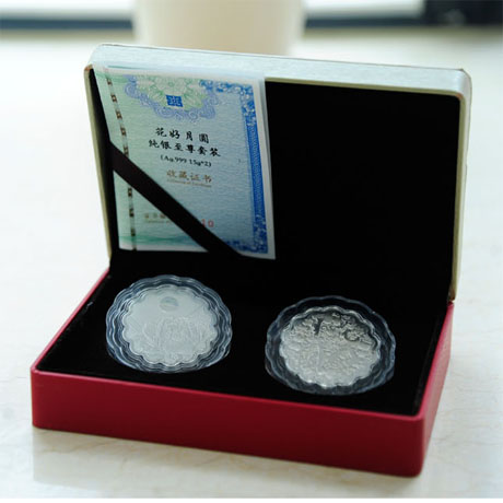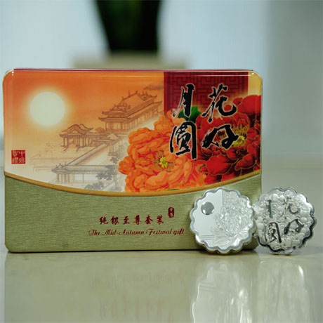花好月圆•纯银至尊套装中秋月圆喜迎盛世,和谐团圆美满幸福!花好月圆既是中秋佳节最为常用的祝福用语,更蕴含着中国百姓对阖家团圆,美满幸福的殷殷期许!本组套装产品由两枚15g Ag.999千足纯银月饼组成,融合镜砂,浮雕等先进工艺,正反两面呈现明月当空,牡丹盛开和瓜熟果香,花好月圆的美图盛景,组合搭配上又是双枚同现,寓意成双成对好事成双,福运相连。本组产品全球限量发行800套,美好祝福与文化品位俱现,实属礼赠臻藏之首选!