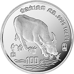 中国丁丑(牛)年金银铂纪念币1盎司圆形铂质纪念币
