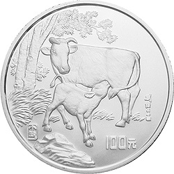 中国丁丑(牛)年金银铂纪念币12盎司圆形银质纪念币