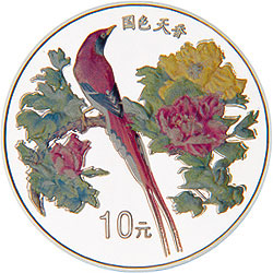中国珍禽系列(天堂鸟)彩色纪念银币1盎司圆形银质纪念币