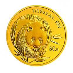 2003版熊猫贵金属纪念币1/10盎司圆形金质纪念币