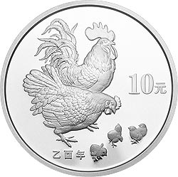 2005中国乙酉(鸡)年金银纪念币1盎司圆形银质纪念币