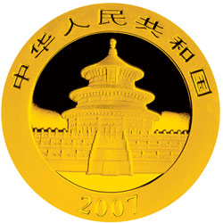 2007版熊猫金银纪念币1/20盎司圆形金质纪念币