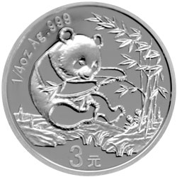 中国熊猫金币发行25周年金银纪念币1/4盎司圆形银质纪念