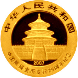 中国熊猫金币发行25周年金银纪念币1/25盎司圆形金质纪念币