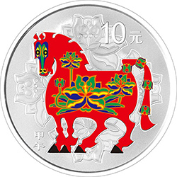 2014中国甲午(马)年金银纪念币1盎司圆形银质彩色纪念币