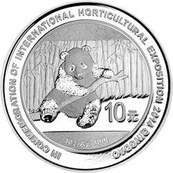2014青岛世界园艺博览会熊猫加字金银纪念币31.104克(1盎司)圆形银质纪念币正面图案背面图案编号2014-0602-ag-1oz年号2014国别中国面额(元)材质成色(%)质量重量形状直径(mm)发行量(枚)10银99.9普制31.104g圆形4040000正面图案北京天坛祈年殿,并刊国名、年号及"2014青岛世界园艺博览会纪念"中文字样。 背面图案熊猫嬉戏图,并刊"1oz Ag .999"字样、"2014青岛世界园艺博览会纪念"英文字样及面额。设计雕刻铸造单位深圳国宝造币有限公司。简介中国人民银行定于2014年4月15日发行2014青岛世界园艺博览会熊猫加字金银纪念币一套。该套纪念币共2枚,其中金币1枚,银币1枚,均为中华人民共和国法定货币。