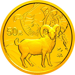 2015中国乙未(羊)年金银纪念币3.110克(1/10盎司)圆形金质纪念币