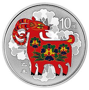 2015中国乙未(羊)年金银纪念币31.104克(1盎司)圆形银质彩色纪念币