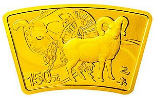 2015中国乙未(羊)年金银纪念币10.368克(1/3盎司)扇形金质纪念币