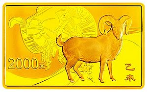 2015中国乙未(羊)年金银纪念币155.52克(5盎司)长方形金质纪念币