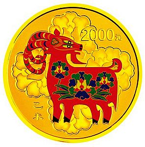 2015中国乙未(羊)年金银纪念币155.52克(5盎司)圆形金质彩色纪念币