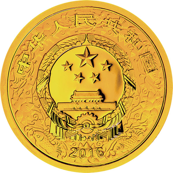 正面图案:中华人民共和国国徽衬以连年有余吉祥纹饰,并刊国名、年号。背面图案:中国民间传统装饰猴造型衬以吉祥纹饰(局部彩色),并刊面额及“丙申”字样。铸造单位:深圳国宝造币有限公司、沈阳造币有限公司、上海造币有限公司。