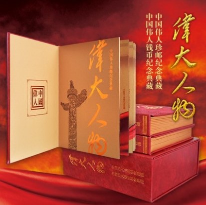 【产品名称】伟大人物—中国伟人邮币大典【产品组合】伟人纪念币8枚、伟人邮票24枚【发行机构】中国人民银行、中国邮政