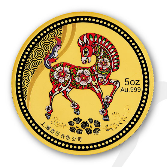 2014马年彩金章 5oz 上海造币厂