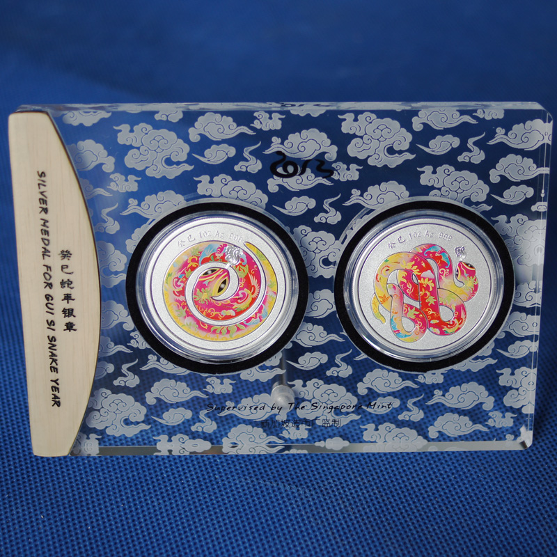 2013癸巳(蛇)年1盎司【藏品名称】祥蛇献瑞—癸巳蛇年1盎司银章套装 【藏品背景】 远古之世,人们畏蛇、敬蛇、崇拜蛇。许多氏族、...