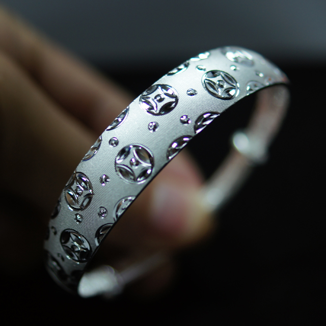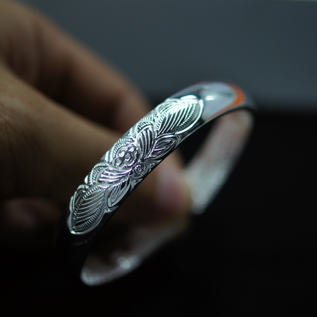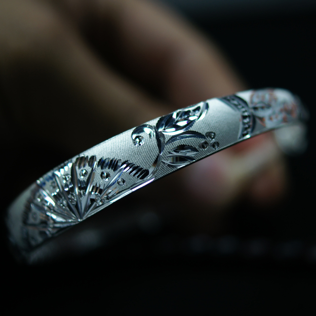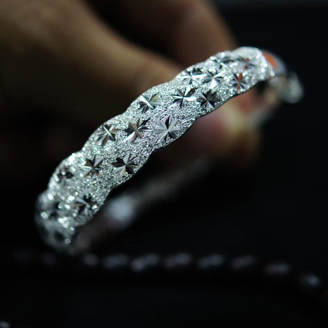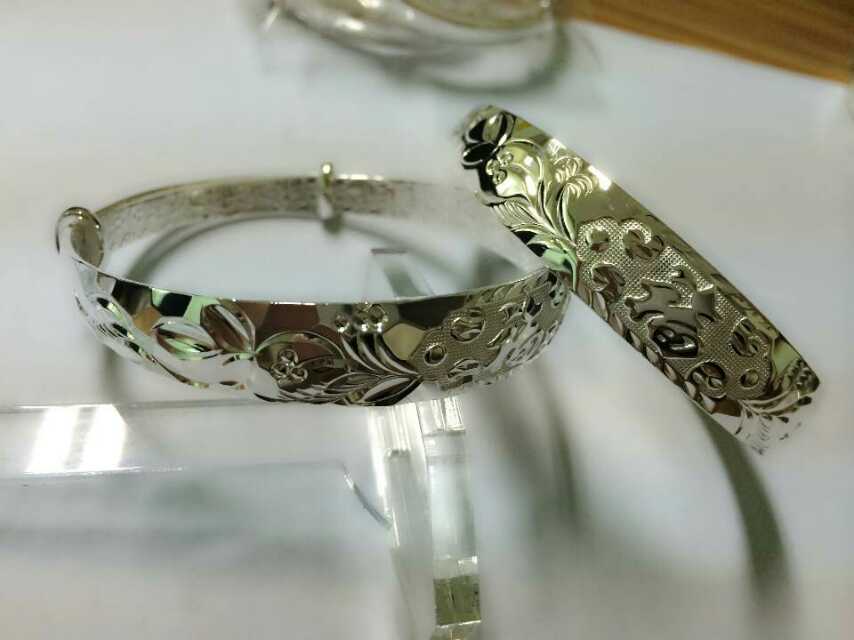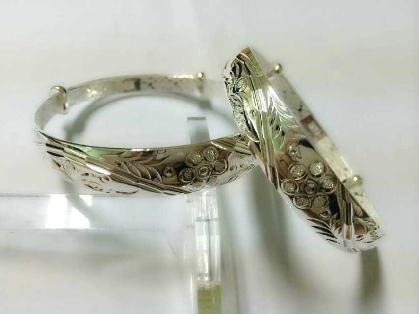 千足银手镯 产品编号:产品编号:SJF-021 材质:千足银 重量:54克左右(一对) 品牌:善金坊
